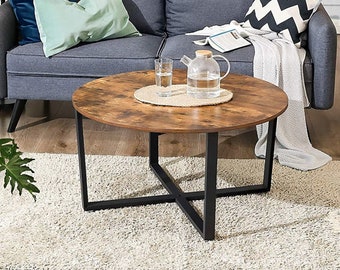 Our round coffee table is crafted from a wooden top and metal frame, it features a circular tabletop with a smoothed textured surface, a cross design offers a sturdy base. (4.2) stars out of 5 stars 6 ratings, based on 6 reviews. It is a modern and sleek design that will compliment any living room. Crafted of solid pine ; Free shipping on orders $35+.